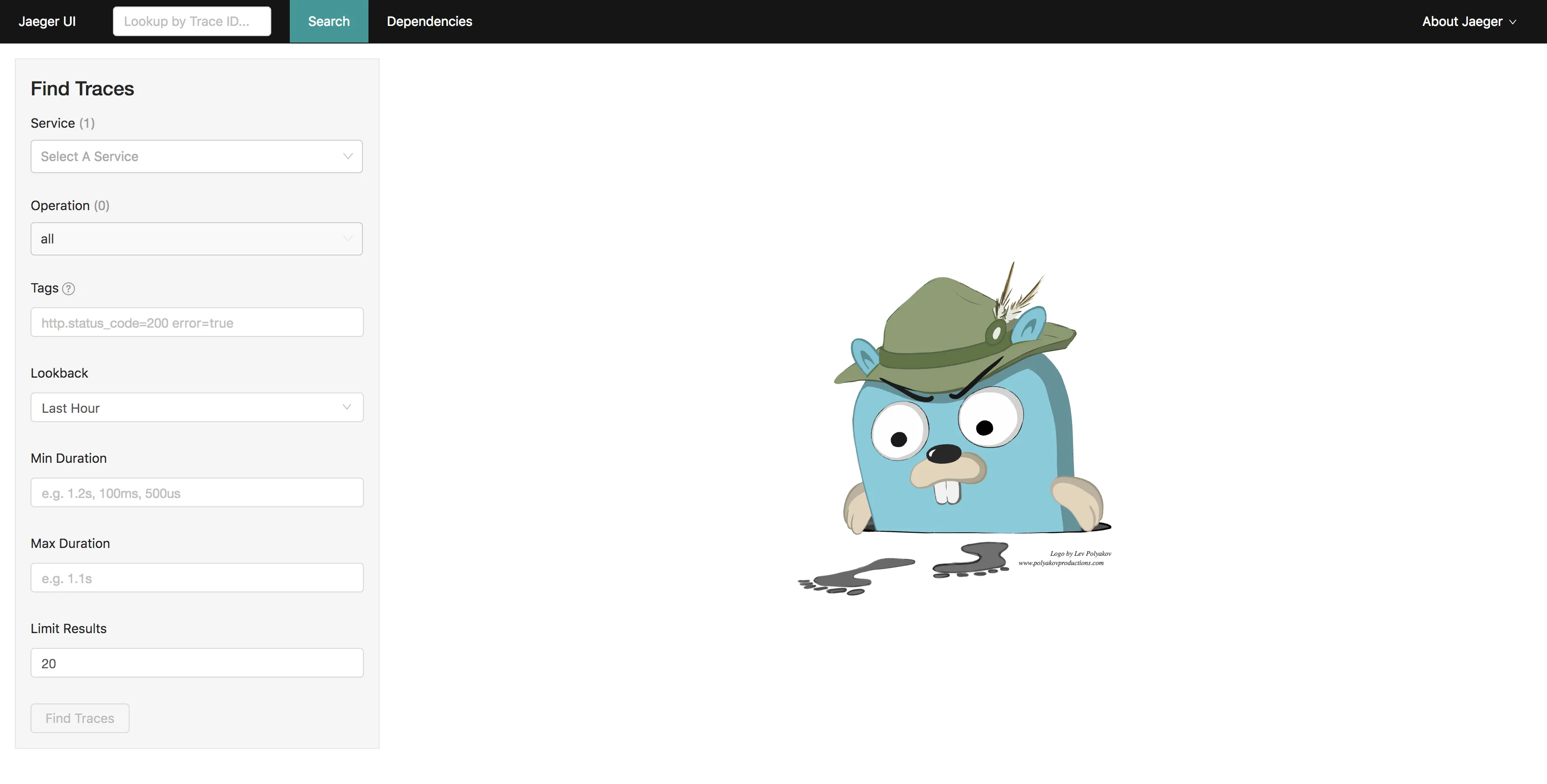 You can click on the link at the top of the page which maps to the right port and it will open Jaeger UI in a new tab.